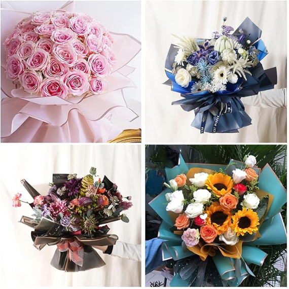High-quality floral wrapping paper available in waterproof matte, translucent cellophane, and rustic kraft styles. Perfect for bouquets, gift hampers, and events.